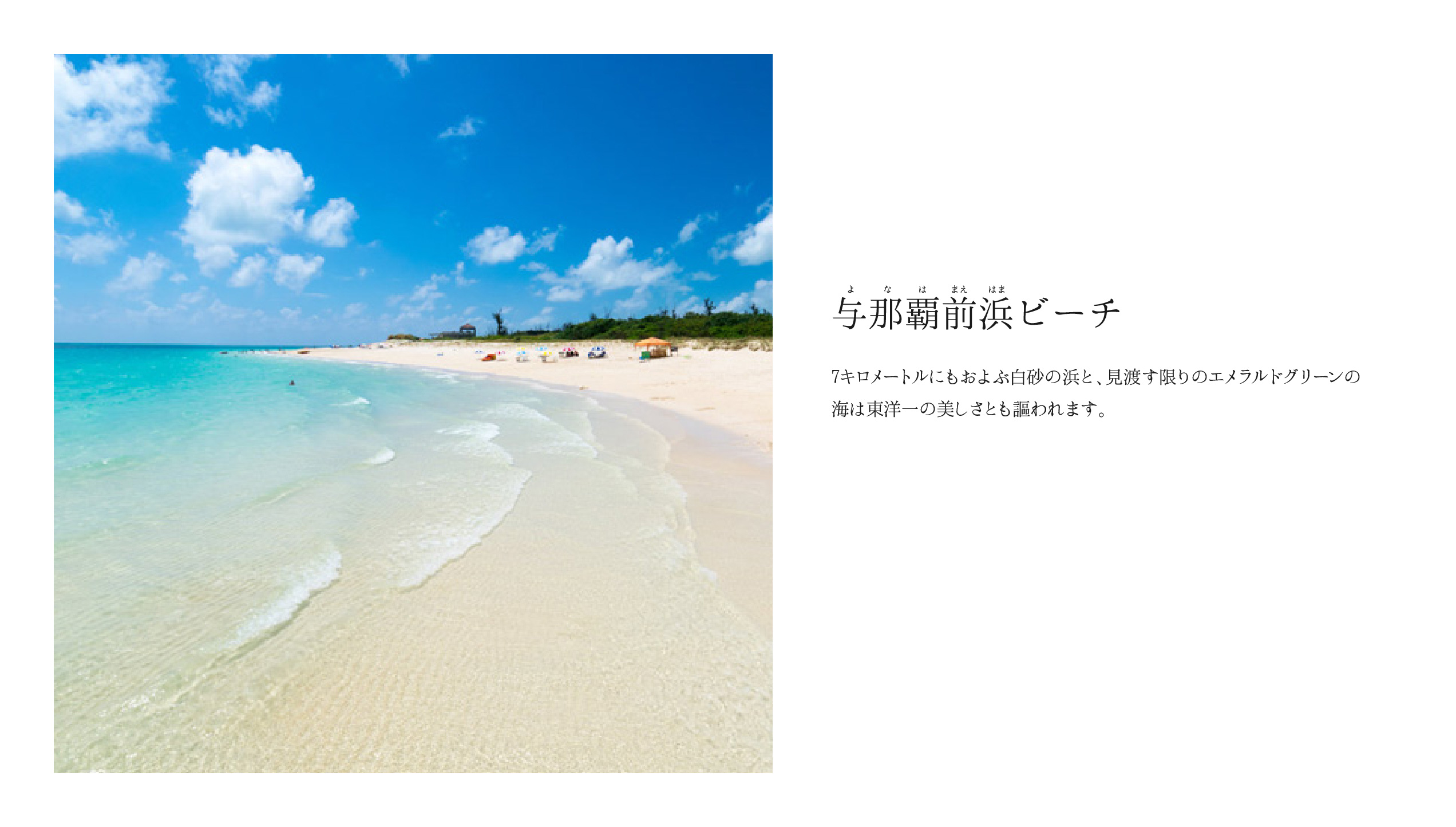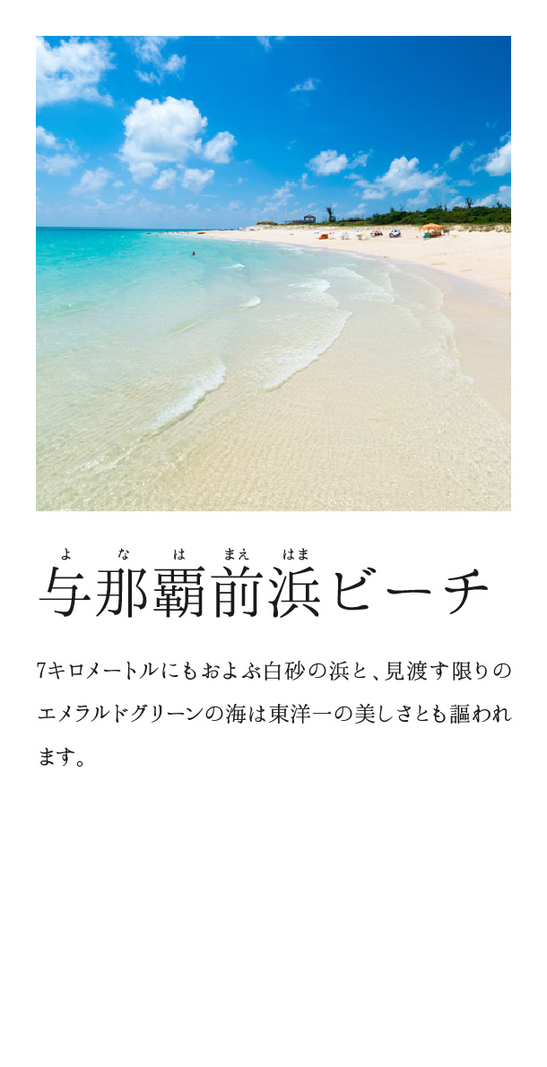 白浜の海岸が見渡す限り続く東洋一美しいと言われる与那覇前浜ビーチ。